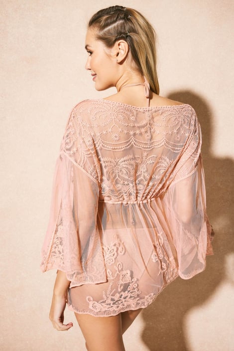 L'abito da spiaggia Amachi II, realizzato in rete fine con ricami, è un capo ideale non solo per essere indossato velocemente sopra il costume. Con bottone a pressione nella zona del décolleté e laccio in vita. Disegnato da Astratex.