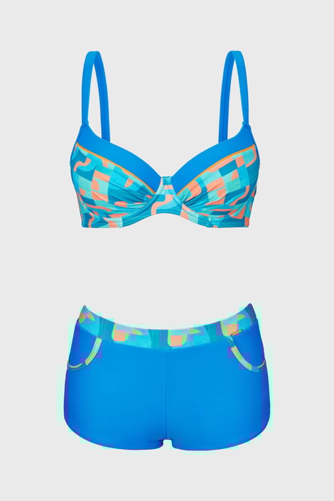Con il costume a due pezzi Constance non passerai inosservata. Le coppe leggermente imbottite creano un décolleté pieno, messo in risalto grazie alla parte centrale bassa. Lo slip shorty nasconde con discrezione le zone problematiche. Capo disegnato da Astratex.