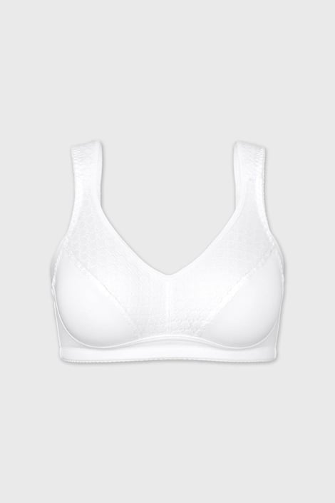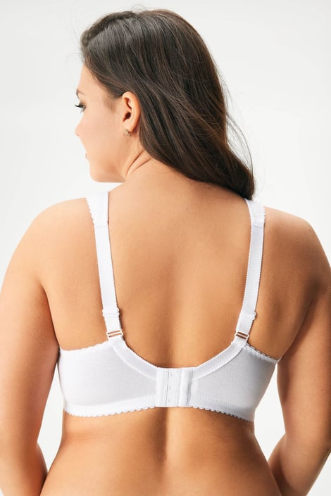 Il reggiseno Nell Cotton è caratterizzato da un taglio sofisticato per garantire il massimo comfort delle donne con un seno generoso. Un'ampia fascia elastica e le spalline con morbida imbottitura aiutano a sostenere e distribuire il peso del seno. Le coppe senza imbottitura e senza ferretto sono decorate nella zona del décolleté con pizzo. La parte laterale leviga la zona sotto le ascelle. Realizzato in cotone eccezionalmente morbido. Capo disegnato da Astratex.