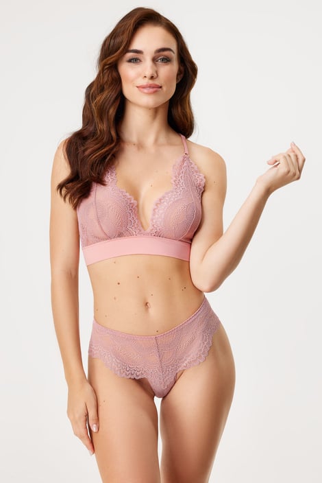 Il reggiseno bralette Pink Peony arricchirà il tuo guardaroba con morbido pizzo e delicato colore rosa. Le coppe in pizzo sono leggere sul corpo e coprono il seno in modo seducente. La parte posteriore è decorata con pizzo che risalterà indossando un top e o un abito largo.