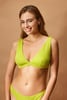 Il top bikini Suri Yellow attirerà l'attenzione sul tuo décolleté. La particolare tonalità lime splende su un corpo abbronzato, mentre le coppe triangolari con la parte centrale bassa modellano perfettamente il seno. Capo disegnato dagli stilisti di Astratex.
